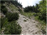 From the parking lot, we continue on Vršič road upwards, and it makes a sharp right turn (23rd zig zag). Immediately after the turn we notice mountain path, which from the road branches off left upwards and then it is ascending by smaller torrent near the road. Higher, the path joins the road which then past a large parking lot we follow to a smaller crossroad, where narrow road branches off to the left upwards, which after few additional strides, brings us to the mountain hut Tičarjev dom na Vršiču.