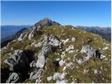 From Cjanovca we continue towards the north on the path which through a lane of dwarf pines descends on a small saddle between Cjanvca and Srednji vrh. Here we step on the ridge, which we then follow to Srednji vrh, and we reach it after few minutes of additional walking.