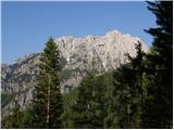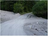 On the west side of the abandoned border crossing we notice an asphalt road which starts gently ascending towards the farm Pamž. We follow the asphalt road to the nearby torrent, where we continue on the bottom macadam road (straight farm Pamž). The road further at first slightly descends, and then turns to the left and continues with some shorter ascents and descents. Eventually the road turns to the right and starts ascending steeper. From the road which has some side branches, beautiful views opening up on surrounding mountains. Higher, we get to a more distinct ridge, where just after the left turn, sharp to the left a worse beaten hunting footpath branches off, which continues on a ridge to the hunting cottage, and we continue straight and the road which again for some time slightly descends, we follow mostly towards the north. Higher, the road which crosses some avalanche slopes turns sharply to the left, and in a moderate ascent, we follow it to the previously mentioned hunting cottage (path on the road is approximately half an hour longer than on a hunting footpath).