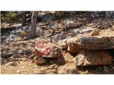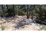 At the starting point signs for Sveti Nikola and Televrina point us on a footpath. The path at first runs through the low forest and it is slightly ascending by a stone fence. Further, the path turns a little to the left and occasionally the views start opening up towards the sea. The path is then for some time ascending diagonally on a slope with a little less trees and consequently with even better view. A little higher, the path brings us into again a little more dense forest where we get to the resting place named Počivalica Farbecof. Here by the path, there are also some benches.