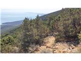 The path here turns to the right and is then for quite some time ascending through the forest from which occasionally still beautiful views opening up towards the settlement Nerezine and island Cres. On a well-marked path we then continue all the way to the marked crossing a little below the top of Sveti Nikola.