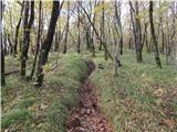 From Podnanos, birthplace of Slovenian national anthem, we go on the road in the direction of village Orehovica. After few minutes of walking, we get to the mentioned village, where signs for Kjecl and Pasji rep-Premrn, point us to the right, on the road which in few 10 strides descends to a bridge over the stream Pasji rep. After the stream, we get to a marked crossing, from which we continue on the right path in the direction of a longer path on Kjecl, Božje Martre and Sveti Socerb (left Kjecl a shorter steep path and Sveti Socerb via Kjecl). The path ahead still leads on the road, and at the nearby crossroad, we go right, and then we on the right side bypass the nearby house. Next follows an ascent on a cart track which partly among vineyards, and partly through the forest ascends in few hairpin turns, and then passes into the forest and continues towards the west, where we continue on and by a mostly forested ridge. We eventually reach an indistinct hill, where there are a chapel, a bell Božje Martre and a pleasant bench.