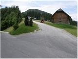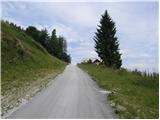 From the starting point, we go on an ascending road in the direction of guesthouse Stari vrh. The road at first gently ascends by the edge of the ski track (in the summer meadow), then crosses a short lane of a forest and then starts ascending steeper. This relatively steep road, from which a nice view opens up on the nearby Lubnik we follow all the way to the mountain hut on Stari vrh.