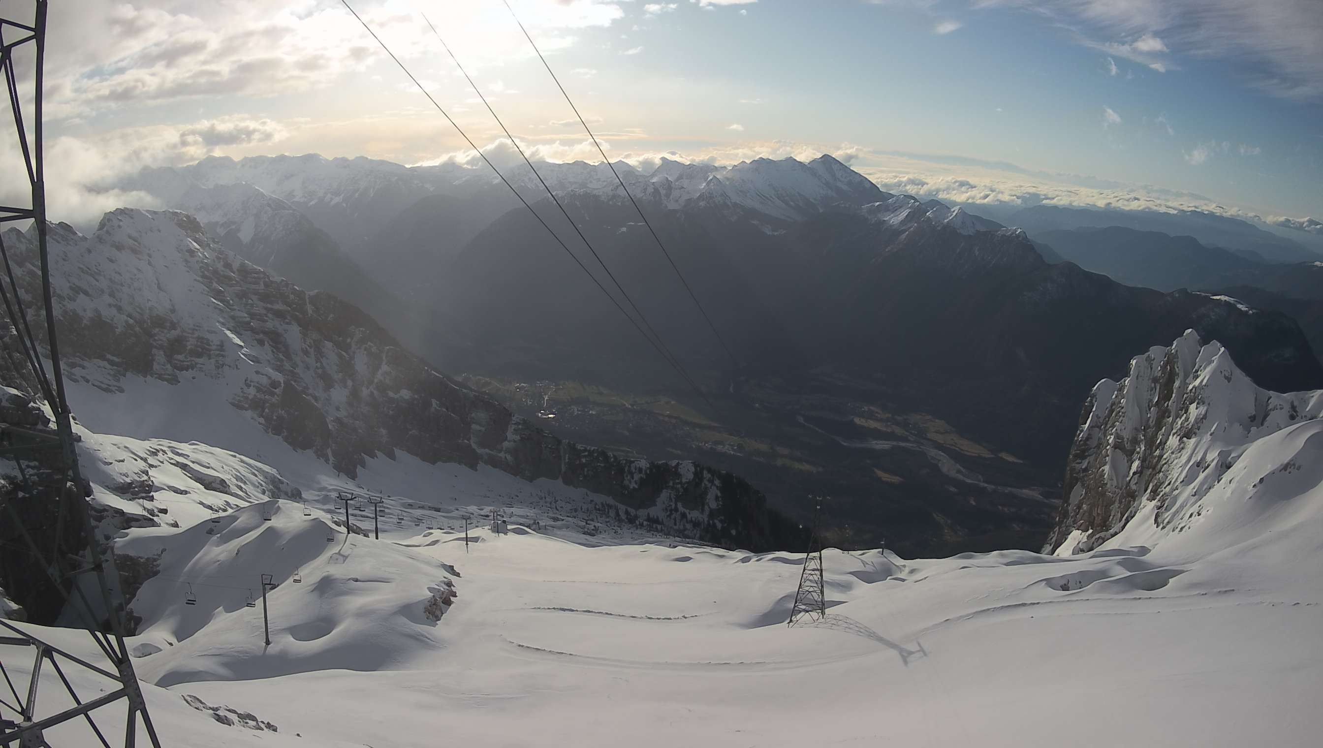 11. Webcam on a ski slope Kanin (2262 meters), a look towards basin Bovška kotlina and Krn mountain range.