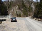 B) From Ljubno ob Savinji or Gornji Grad we drive to Mozirje, and there from a roundabout near the store Hofer we continue in the direction of Bele Vode, and then we further follow the signs for Ljubijski graben. Higher, the asphalt ends and after shorter quite steep part the road flattens and past the homestead Rožman brings us to a water catchment, which is situated near the confluence of the rivers Ljubija and Kramarica. We park on an appropriate place by the water catchment.