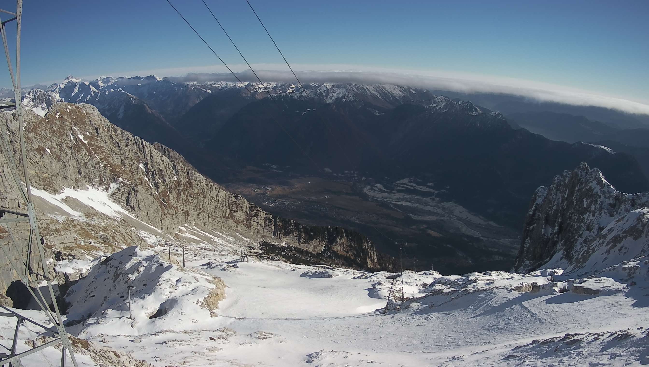 11. Webcam on a ski slope Kanin (2262 meters), a look towards basin Bovška kotlina and Krn mountain range.